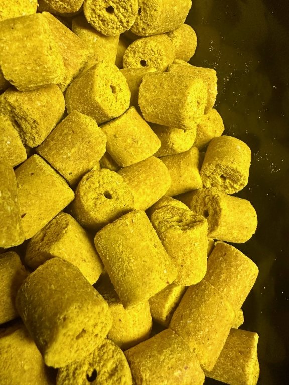 A pelletek bojliknál megszokott prémium alapanyagokból készülnek, így kiválóan alkalmasak az etetés hatékony dúsítására. Vízbe kerülve azonnal aktiválódnak, majd oldódásuk során fokozatosan szabadítják fel értékes aromáikat, hosszú időn át fenntartva a csalogatóhatást. Az oldódási idejük megközelítőleg 10 óra, így nemcsak gyors, hanem tartós megoldást is nyújtanak.