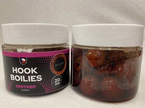 Ugyanaz a bevált recept – extra ütős vonzerővel. Az Imothep Hook Boilies horogcsalik ugyanabból a prémium keverékből készülnek, mint az Imothep bojlik, azonban egy lényeges különbséggel: egy kiváló minőségű, intenzív ízvilágú folyékony adalékban kerülnek beáztatásra.Ennek köszönhetően a csali sokkal gyorsabban dolgozik, erőteljesebb csalogatóhatást fejt ki, és hatékonyan növeli a kapások esélyét – akkor is, amikor a halak óvatosak. Azonnali aroma-kibocsátás, Fokozott vonzerő a horogon, Bevált Imothep receptúra, továbbfejlesztve.Amikor a horogcsalin múlik a kapás – ez nem hagy cserben!